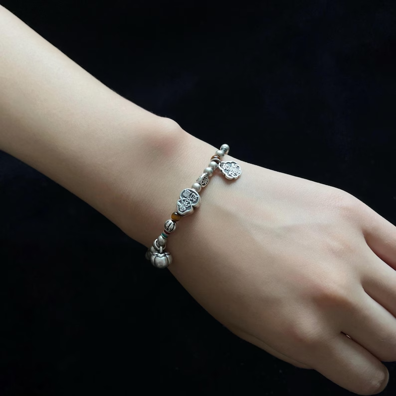 Sterling Silver Jade Beaded Bracelet – Chinese Style Charm