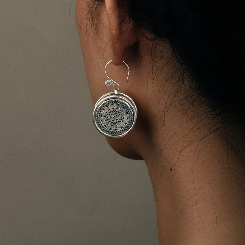 2 reviews for Hmong Tribal Silver Earrings – Round Dangle Design