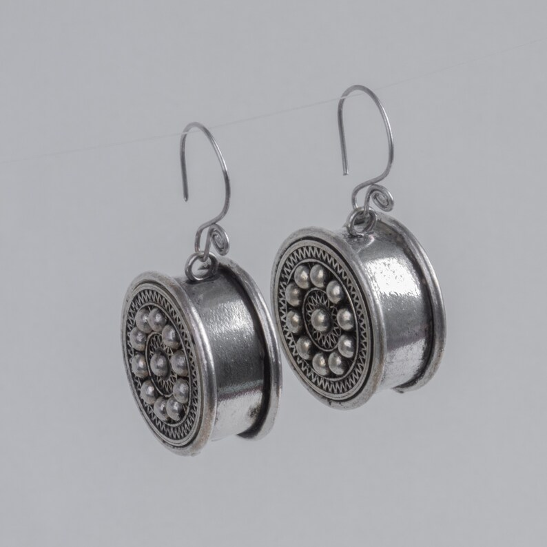 Hmong Tribal Silver Earrings – Round Dangle Design