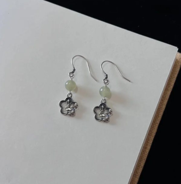 Jade Butterfly Sterling Silver Earrings – Retro Chinese Design