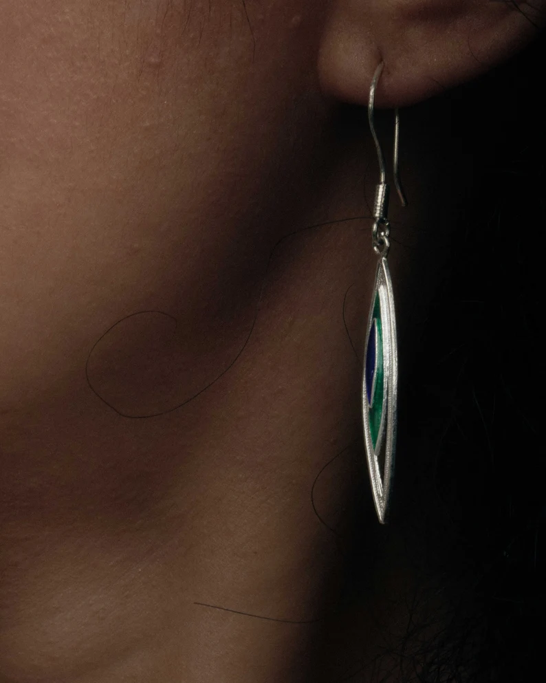 2 reviews for Peacock Enamel Dangle Earrings – Blue & Green Elegance
