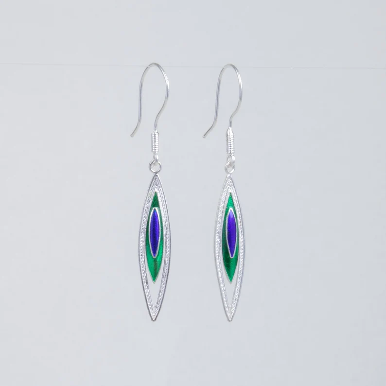 Peacock Enamel Dangle Earrings – Blue & Green Elegance