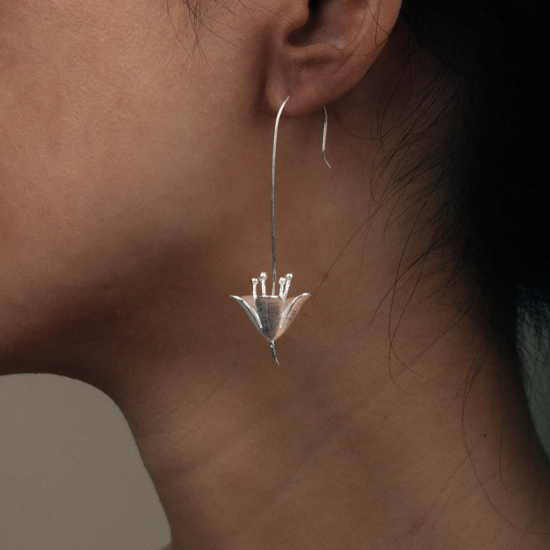 Whether for everyday elegance or special occasions, the Silver Long Drop Flower Earrings add a refined, stylish, and timeless touch to any outfit.